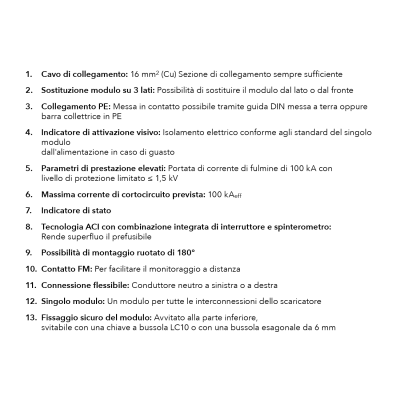 Grazie all'isolamento sicuro del modulo di protezione dall'alimentazione, il sistema può continuare ad essere utilizzato senza interruzioni anche in caso di manutenzione. Idealmente, la manutenzione può essere effettuata con l’impianto in funzione. In questo modo si riducono al minimo i costosi tempi di inattività. Inoltre, DEHNventil ACI offre i consueti parametri prestazionali di eccellenza (100 kA di portata di corrente di fulmine / 100 kA di resistenza alla corrente di cortocircuito) con la migliore protezione possibile (certificazione di tipo 1+2+3 con protezione delle utenze finali).