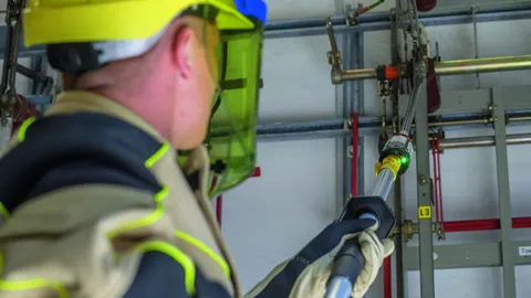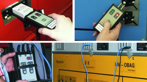 Sicherheitsgeräte wie: Betätigungsstangen, Sperrelemente, Spannungsprüfer, Erdungs- und Kurzschließvorrichtungen und isol. Schutzplatten zum Arbeiten nach den fünf Sicherheitsregeln.