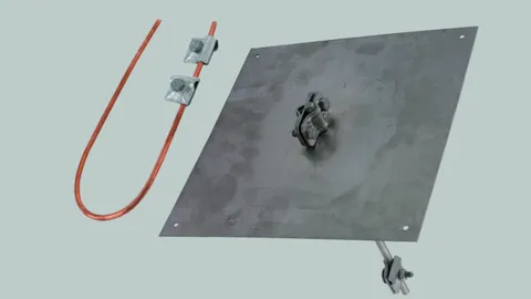 Nach DIN EN 62305-3 Bbl. 1 sind für den Anschluss bei Materialstärken ≥ 0,5 mm vier Nieten Ø5 mm oder bei Materialstärken ≥ 2 mm zwei Blechtreibschrauben Ø6,3 mm aus NIRO zu verwenden (beidseitig).