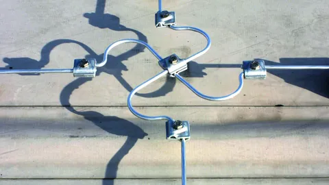 Supports de conducteurs de toit, pièces d'extension et composants de pontage (câbles, bandes, pattes) pour toits plats.