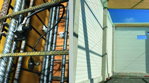 Bornes de mise à la terre et pinces de raccordement fixes pour l'établissement de liaisons équipotentielles. Electrodes de terre et douilles murales pour entrer en toute sécurité des conducteurs dans un bâtiment. Colliers d'armature pour relier l'armature au système de terminaison de terre de telle sorte qu'il peut porter des courants de foudre.