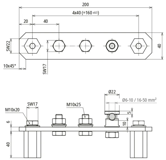 | Anschlüsse | 1x KS-Verbinder, 2x Schraubanschluss M10 |