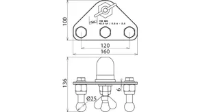 - Ausführung für Kugelfestpunkt Ø20 mm, Ø25 mm oder Ringnutbolzen Ø16 mm