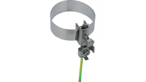 Erdungsbandrohrschellen zum Einbinden von Rohren in den Schutz- und Funktionspotentialausgleich nach DIN VDE 0100-410/540, mit stetig verstellbarem Spannband.