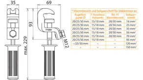 | Für T-Anschlussbolzen Halsweite | 15 mm |