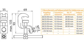 | Für Seilquerschnitt Cu | 16 ... 150 mm2 |