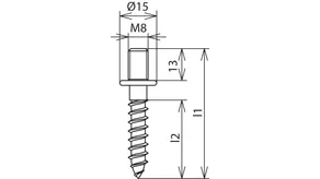 Hanger bolt for fixing of conductor, flat strp and rod holders with female thread.