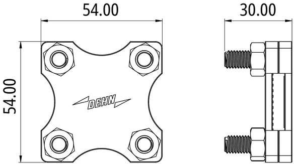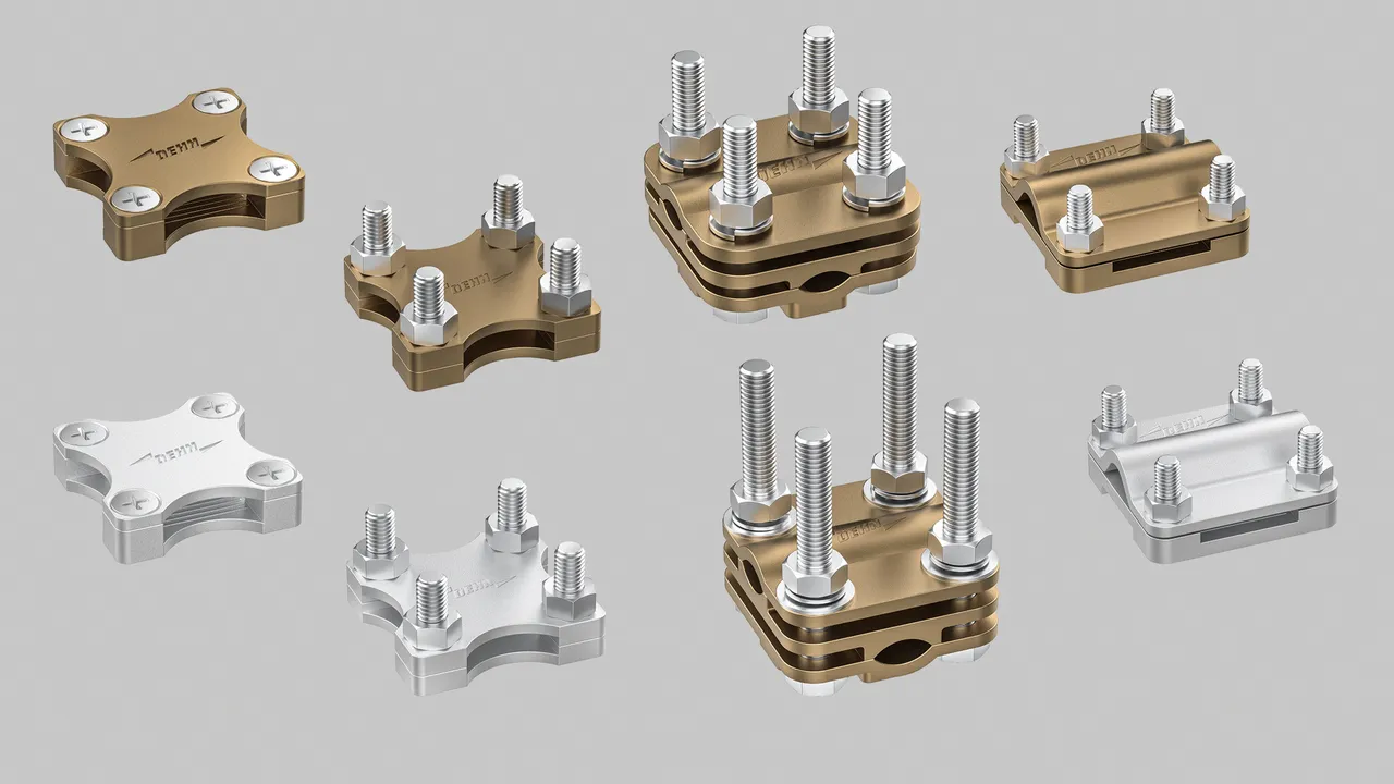 Square Conductor Clamps for interconnecting various sizes of flat, round and stranded conductors in parallel, cross, and T connection arrangements to form a continuous network. Equipped with a countersunk hole for fixing the clamp to structural surfaces. The Clamps have a high resistance to corrosion and show high mechanical strength to ensure a lasting connection.