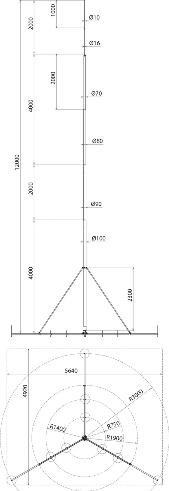 | Surface load with 18 bases, 17 kg each | approx. 420 kg |
