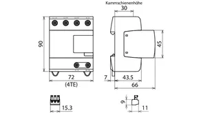 Modular combined lightning current and surge arrester for TT and TN-S systems (3+1 configuration).