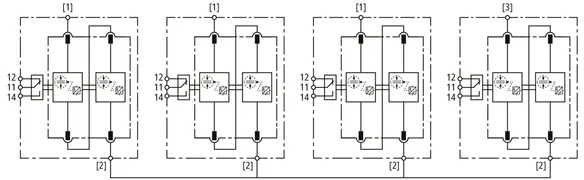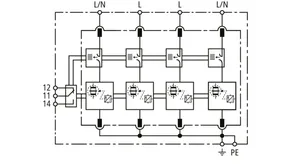 Kit consisting of pluggable lightning and surge arresters, including insulated module wiring bar for use in inverter systems with active anti-PID with maximum DC offset of 750 V DC. Wiring of the earthing systems in accordance with IEC 60364-4-44, Table 44.A1 – RE and Z as well as RE and RA connected.