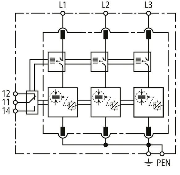 Type 1 + type 2 + type 3 arrester as per EN 61643-11