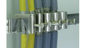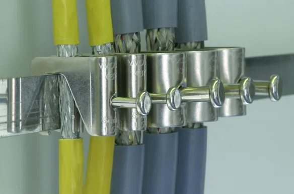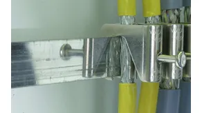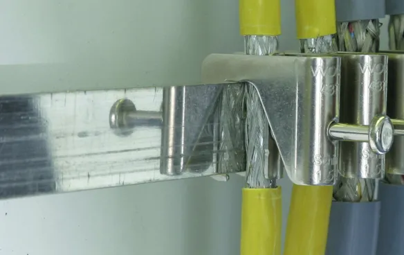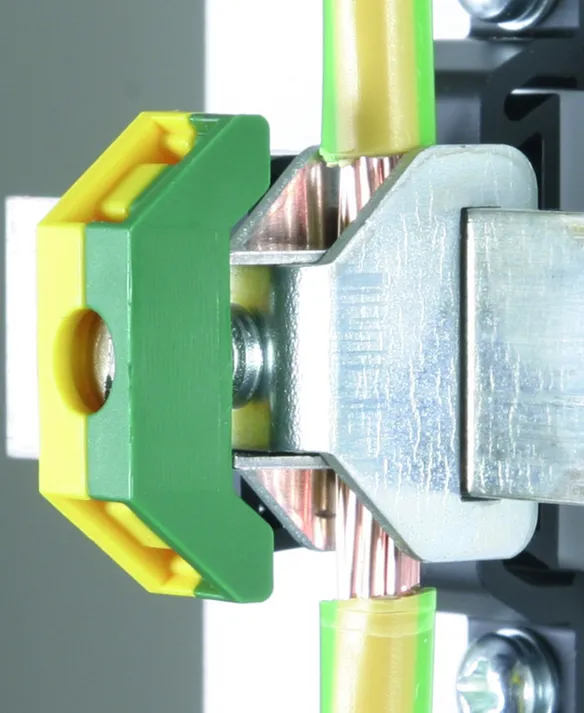 Shield terminals for earthing cable shields on busbars (18x3). Suitable for lightning equipotential bonding. Can be subsequently installed without interrupting the cable shield or requiring tools for installation.