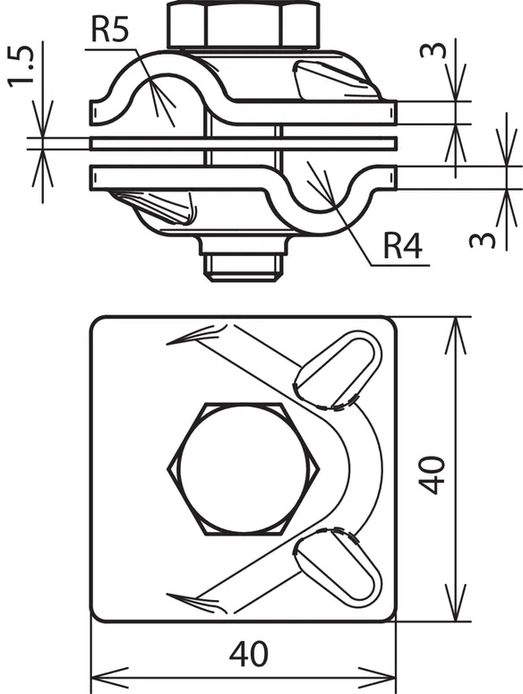 MV clamp for air-termination rods with truss head screw, StSt