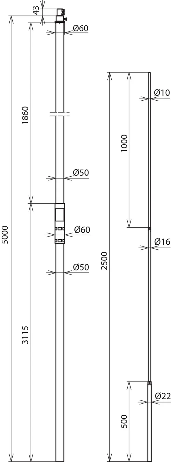Length of supporting tube 5000 mm