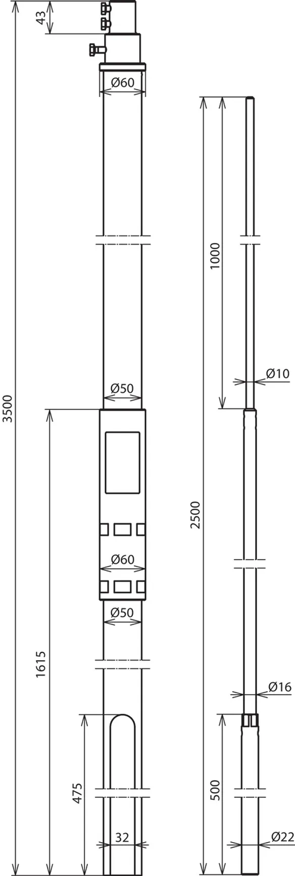 Length of supporting tube 3500 mm
