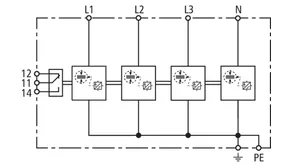 | Lightning impulse current (10/350 µs) [L1+L2+L3-PEN] (Itotal ) | 22.5 kA |