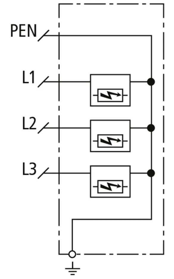 Lightning impulse current (10/350 µs) [L1+L2+L3-PEN] (Itotal ) 22.5 kA