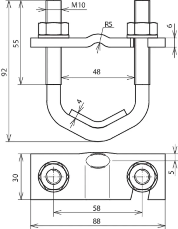 For cross connections of round conductors (6-10 mm) or for fixing and simultaneous connection of fixed earthing terminals.