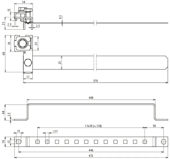 Dimensions (l x w x d1) 472 x 30 x 3.5 mm