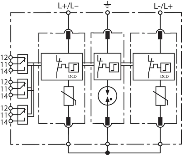 • Powerful d.c. switching device DCD prevents fire damage caused by d.c. switching arcs