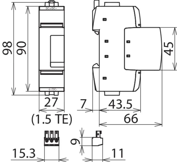 for DC applications, width of 6 DIN modules