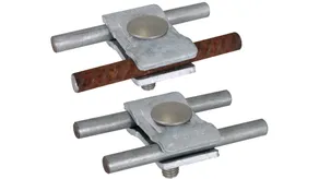 Conductor holder for fixing short-circuit wires to stone gabions and steel grid fences.